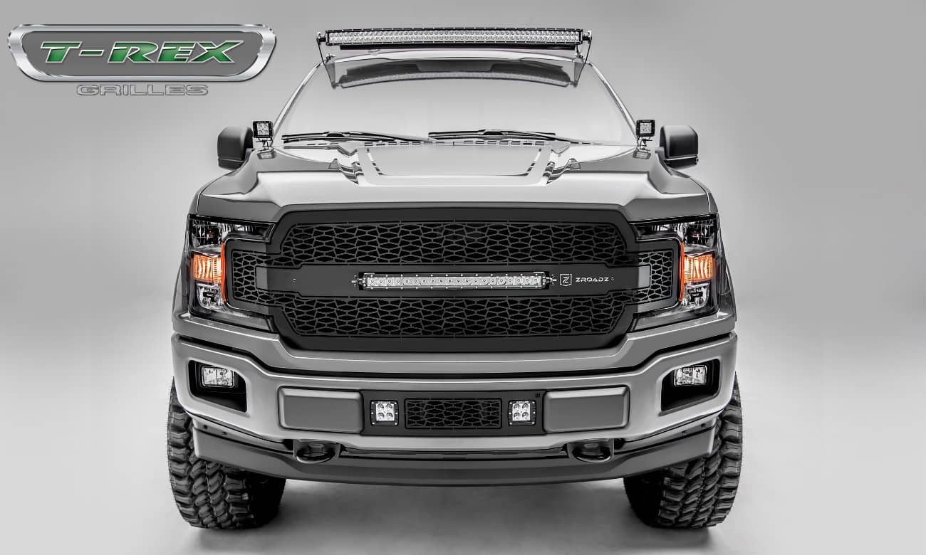 T-REX LED LIGHTED BLACK MESH GRILLE ; 18-20 F150 WITH 20" LIGHT BAR WITHOUT FRONT CAMERA