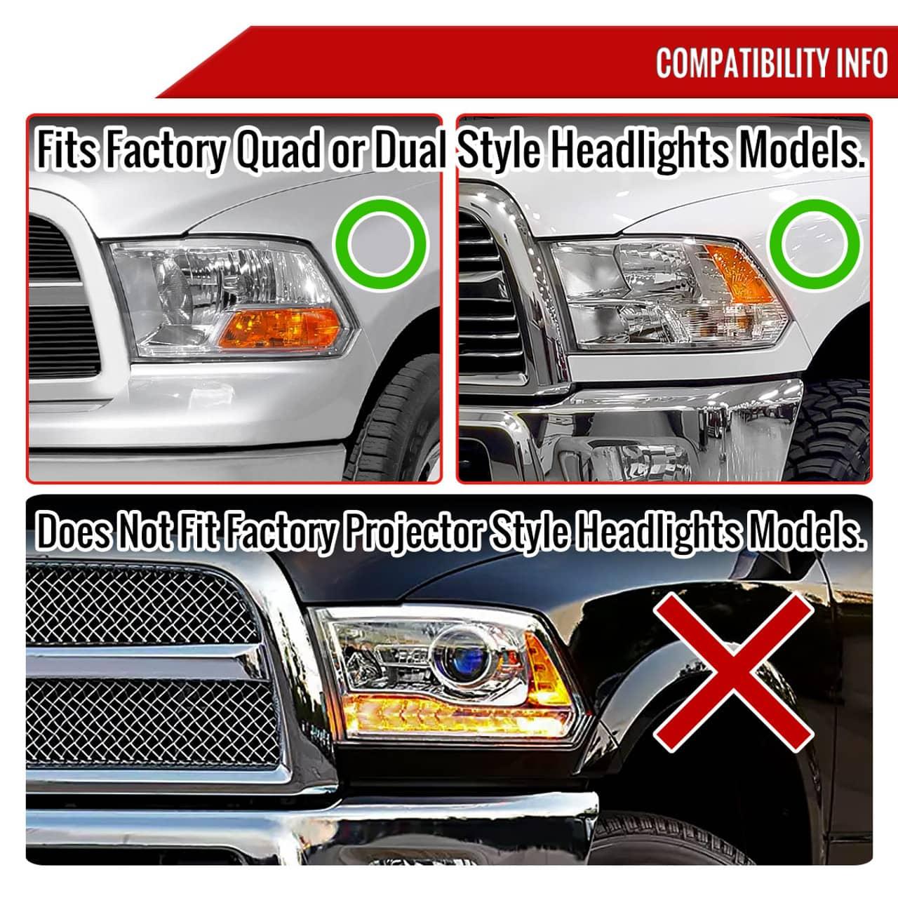 - Includes (1) pair of dual projector style headlights with switchback, sequential LED turn signal in matte black housing with clear lens