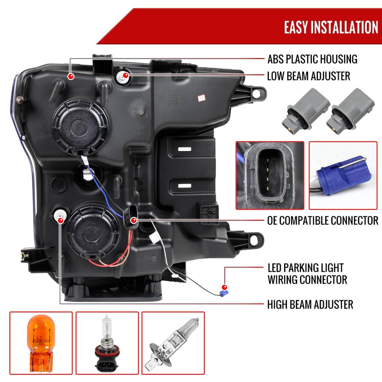 - Comes with (1) pair of projector headlights with fiber optic LED bar in black housing with smoked lens
