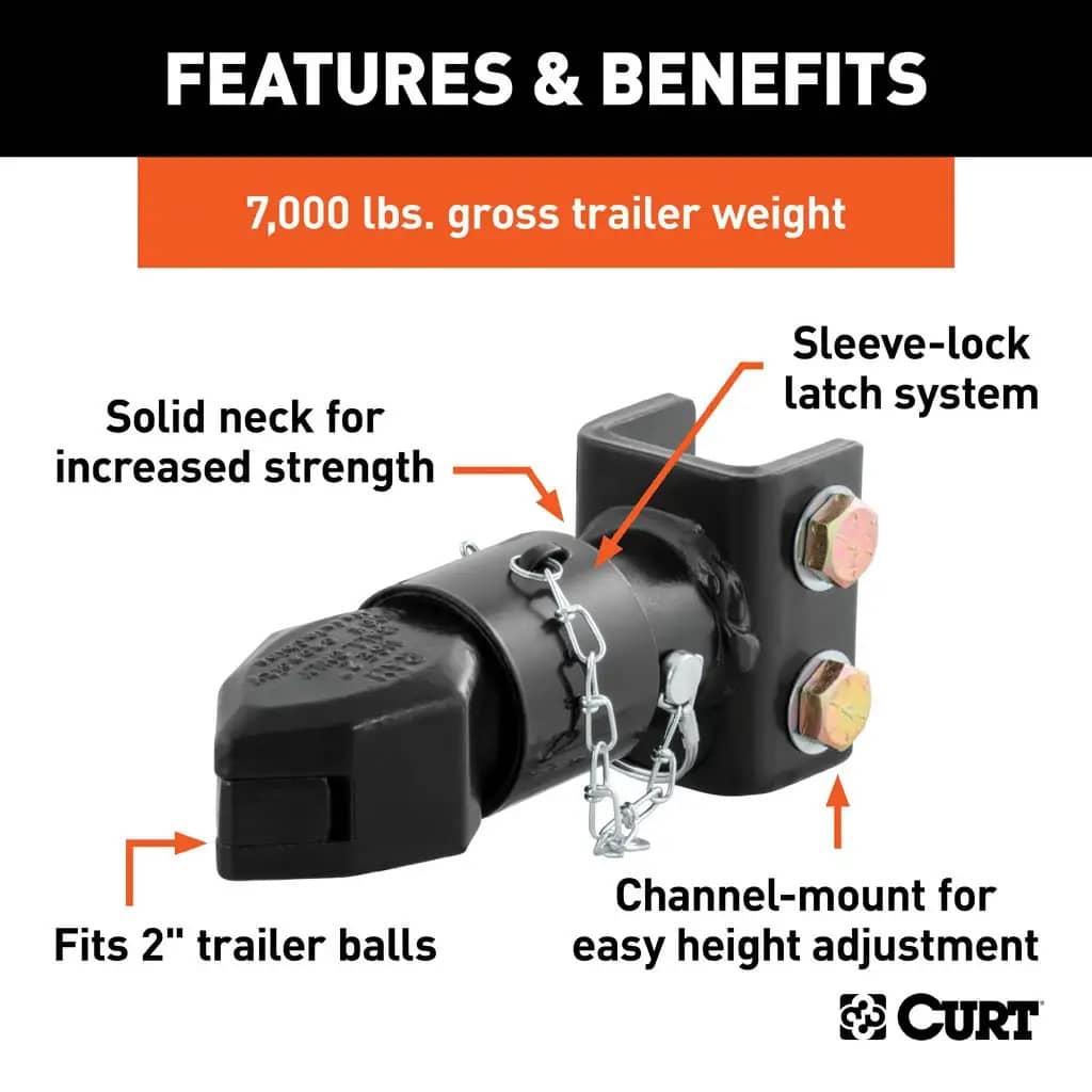 2" Channel-Mount Coupler with Sleeve-Lock (7,000 lbs, Black)
