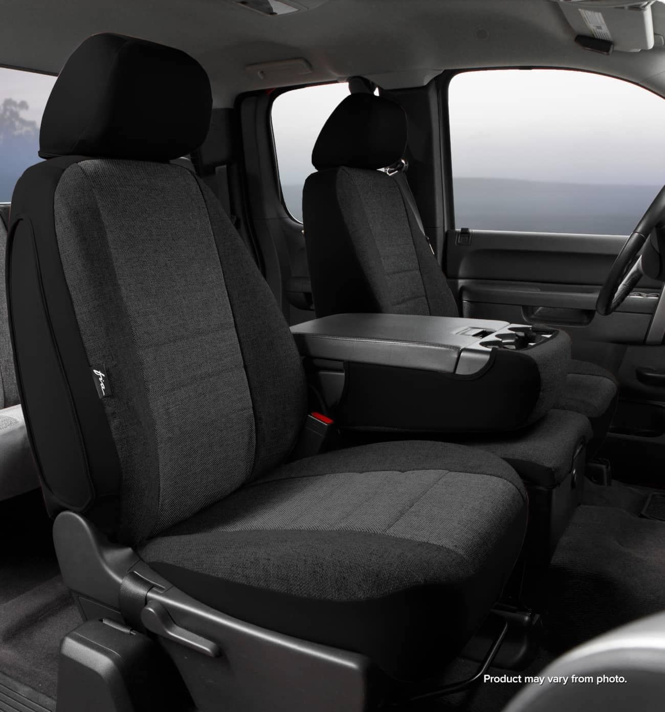 FIA CHARCOAL/BLACK OE TWEED FRONT SEAT COVER ; 02-10 SUPER DUTY 40/20/40 WITH ARMREST CONSOLE & CUP HOLDER