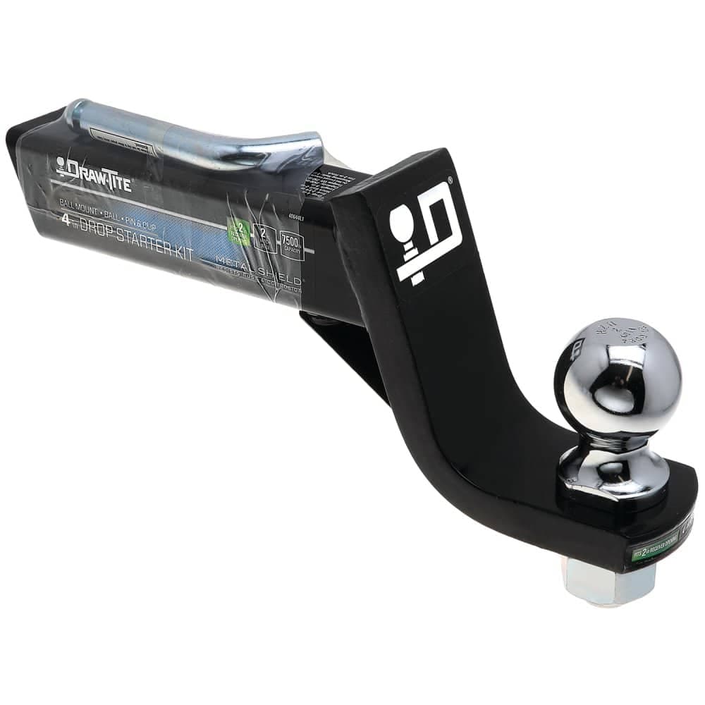 - This trailer hitch starter kit comes complete with a pre-attached trailer ball and a ball mount with a 4 in. drop and a 2 in. shank.